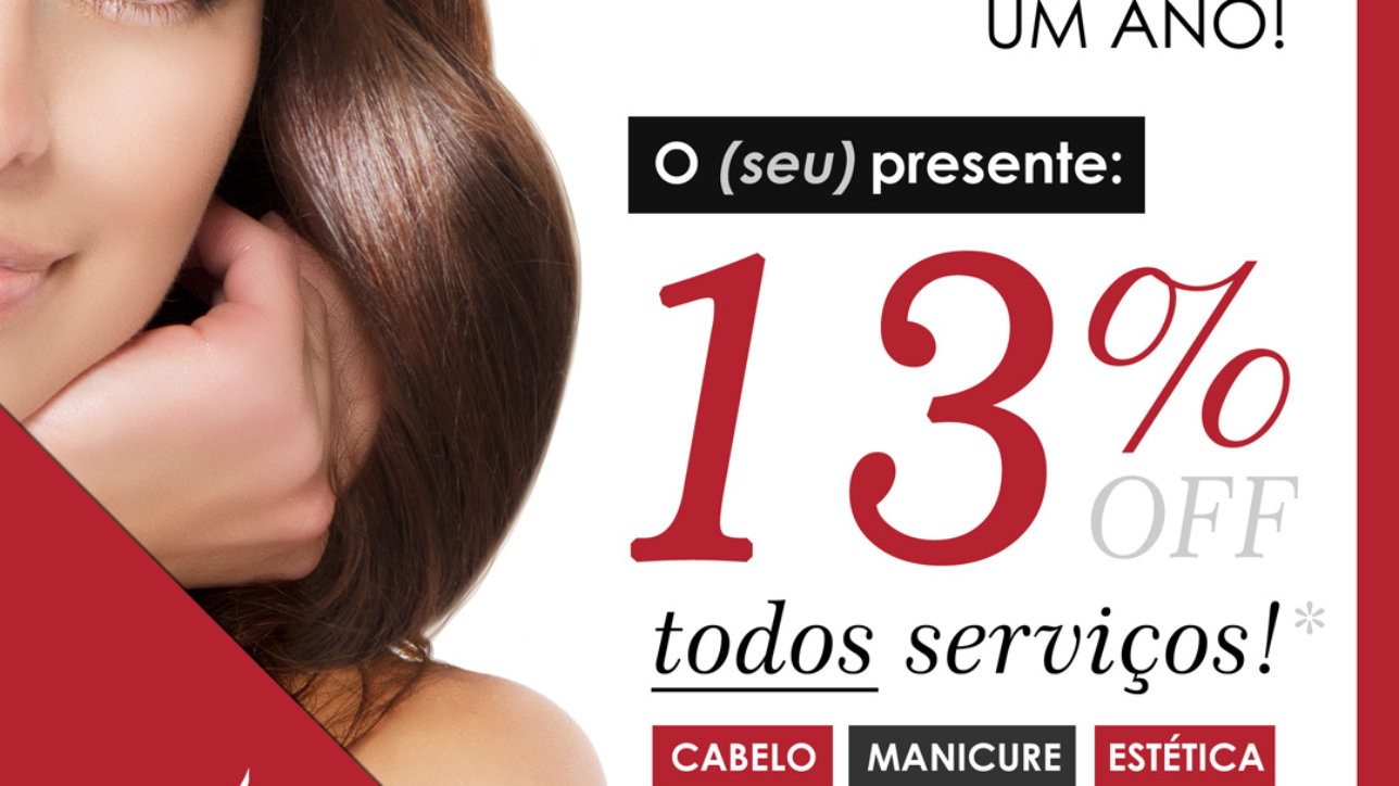 13 de março, 13% OFF! Hoje dia 13 de março, o salão Altitude completa cinco anos! E para comemorar essa data com vocês, oferecemos 13% de desconto em TODOS OS SERVIÇOS o DIA TODO!!! Aproveita e chama os amigos e as amigas! É só hoje! ☎ (84) 2040-4040 / 99999-3234 (WhatsApp).
